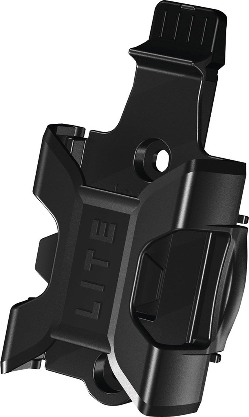 Système d'attache avec lanières de velcro ou se visse directement dans l'emplacement du porte-bidon