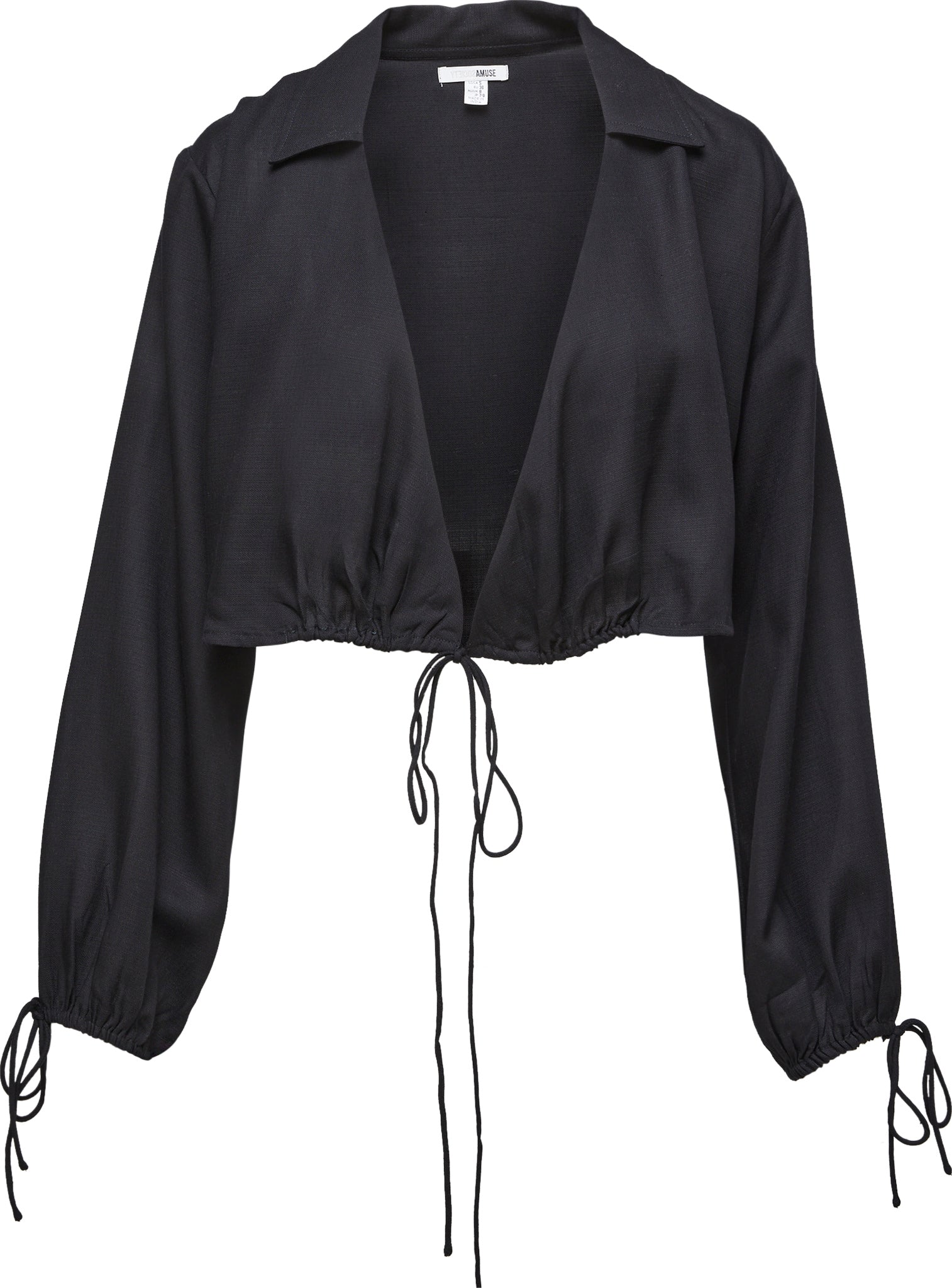 Ce haut à manches longues écourté est confectionné en tissu tissé mélangé hautement texturé.