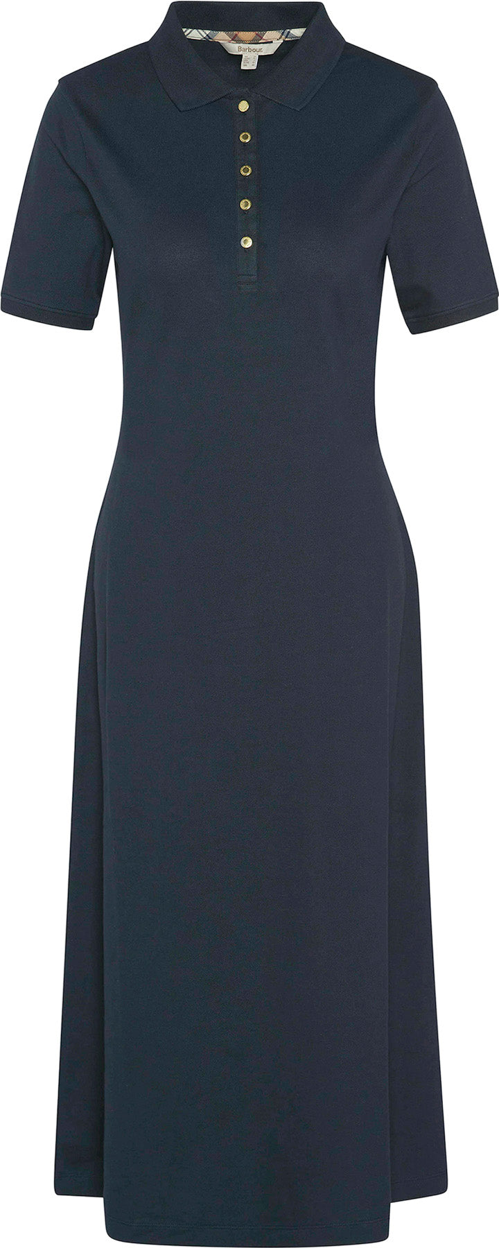 Robe polo midi ajustée et évasée en piqué de coton mélangé, avec col et poignets côtelés. Boutons Barbour sur le devant, bande écossaise au dos du col et fine barre d'identification métallique au dos du col.