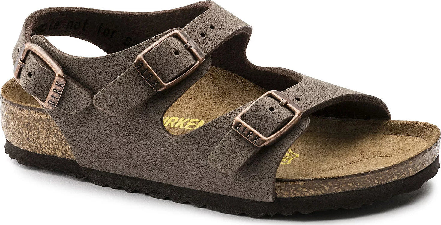 Avec la sandale Roma, Birkenstock donne un nouveau souffle à un modèle qui, depuis les années 70, est très apprécié des personnes actives et soucieuses de leur santé.Cette version du modèle classique a reçu une touche de style et d'adaptation aux enfants. La forme fermée, légèrement surélevée sur les côtés, offre même aux petits enfants qui ont envie de bouger une protection suffisante et une meilleure adhérence, même lorsque les choses se gâtent.