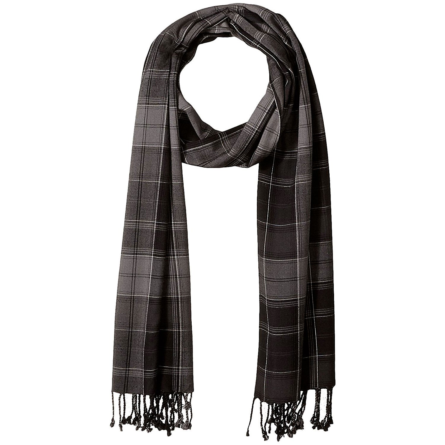 Fabriqué de viscose-nylon soyeuse à 100 %, non seulement ce beau foulard à motif écossais garde votre cou au chaud et confortable, mais il complète bien votre garde-robe d'hiver aussi. Finition à frange amusante.
