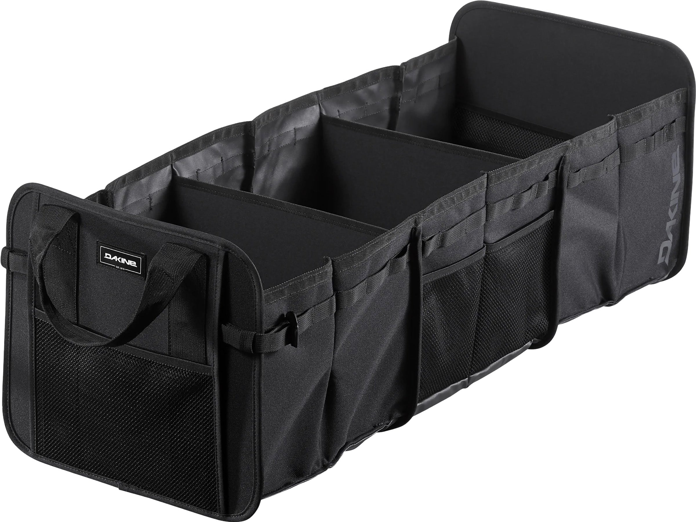 Un peu d'organisation fait beaucoup, et beaucoup d'organisation fait encore plus. Si vos journées sont bien remplies et que votre véhicule est votre point de chute, l'organiseur Gear Organizer vous aidera à tout garder à sa place. L'organiseur est entièrement pliable et doté de sangles de compression pour un rangement compact lorsqu'il n'est pas utilisé. Une fois entièrement déployé, il dispose de trois compartiments principaux avec des panneaux de plancher moulés et des parois latérales revêtues qui ajoutent de la rigidité et sont faciles à nettoyer. Les poches extensibles sur les côtés et les extrémités sont parfaites pour ranger les petits objets, tandis que les poignées de transport facilitent le transport vers et depuis votre véhicule. Pour ceux qui ont des véhicules plus petits ou moins d'articles à ranger, l'organiseur peut être réduit à deux ou même un compartiment en serrant les sangles de compression. Bienvenue dans un tout nouveau monde d'organisation.