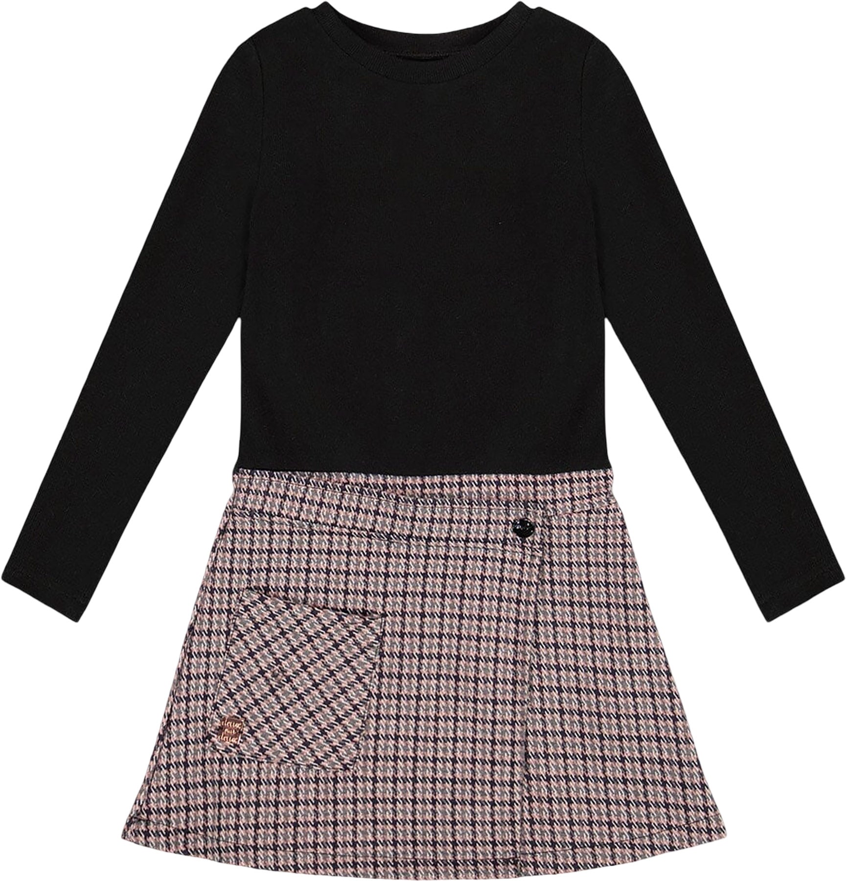 Robe bi-matière Noir et Pied-de-poule - Petite fille