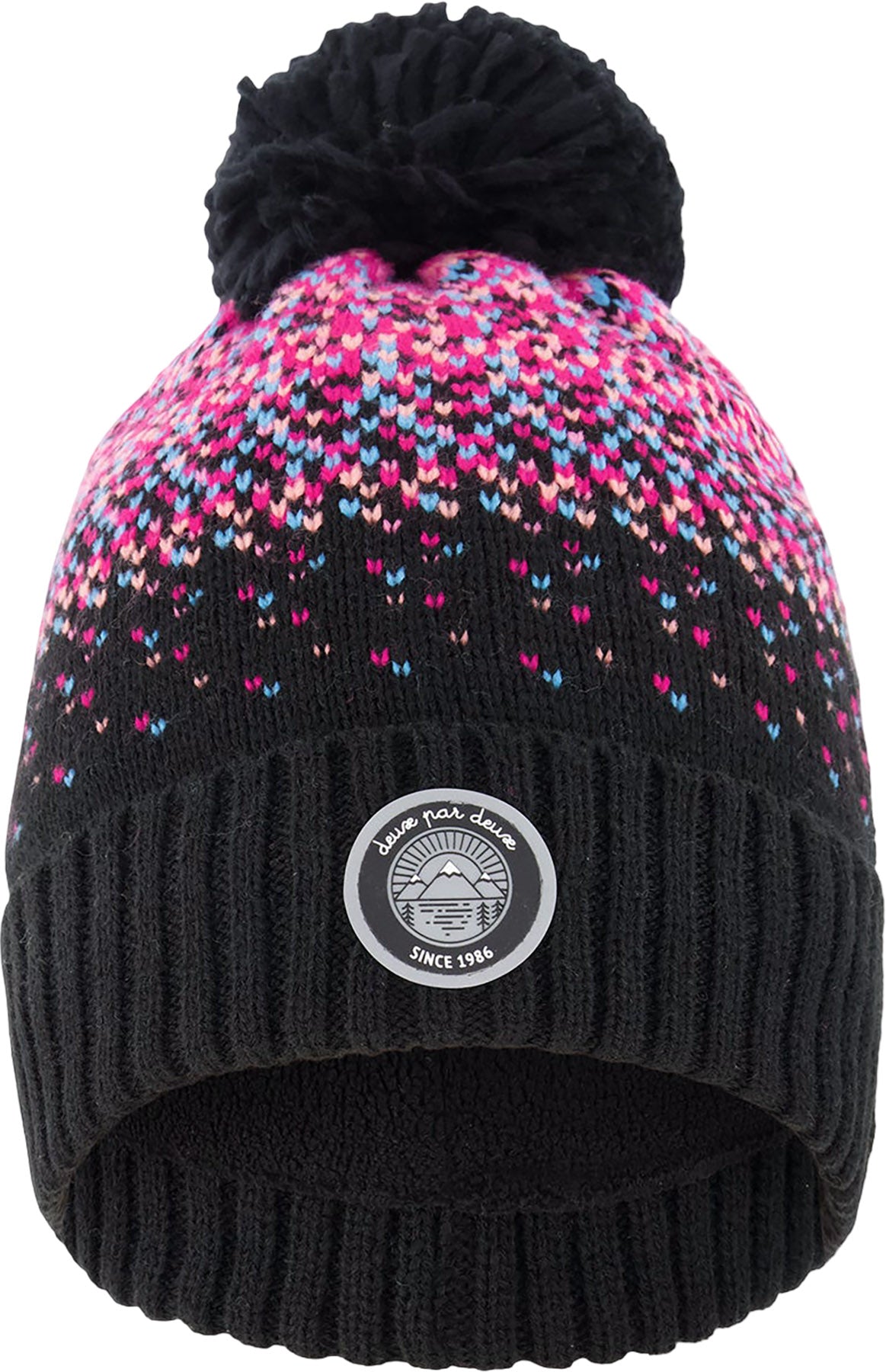 Tuque en tricot doublé à pompon Noir et Rose - Petite fille