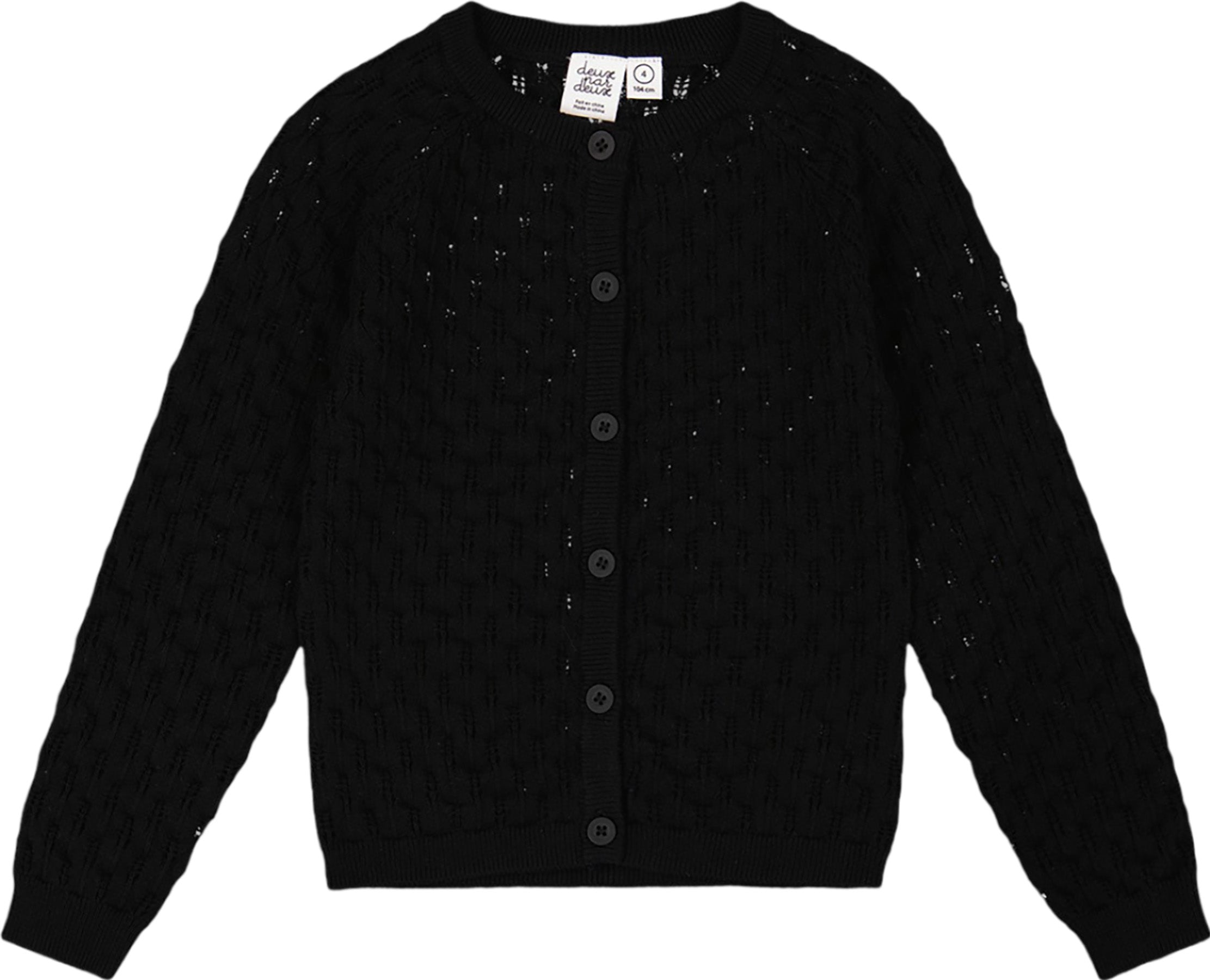 Caractéristiques • Cardigan à manches longues • Texture pointelle • Fermeture boutonnée sur le devant • À partir de 12 mois à 14 ans