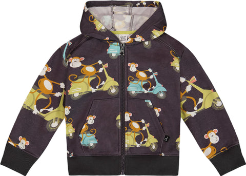 Il n'y a rien de plus mignon que notre sweat à capuchon zippé en molleton imprimé avec singe sur vespa bleu marine. Parfait pour les nuits fraîches du printemps et de l'été, cet adorable sweat à capuchon a des manches longues, une fermeture éclair sur le devant, des bordures en tricot côtelé aux poignets et à l'ourlet, ainsi qu'un imprimé intégral vif. Associez-le à un short assorti pour un look cool et coordonné!