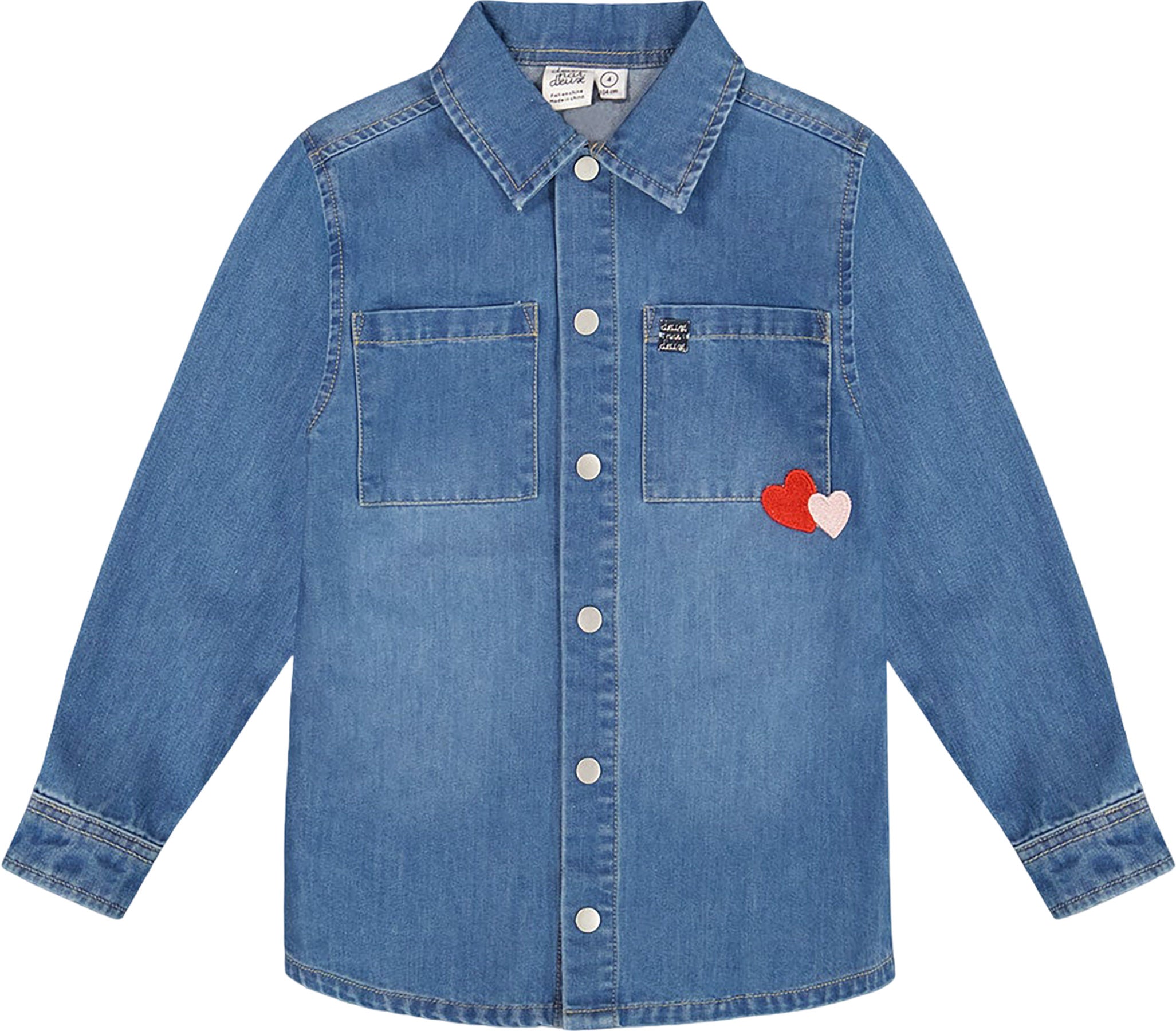 Cool et pleine de fantaisie, la chemise en denim bleu pâle avec poches plaquées et écusson en forme de pomme apporte une touche ludique à un basique de son vestiaire. Confectionnée en denim doux mélangé, cette chemise à manches longues a un col classique, un ourlet arrondi et deux poches plaquées à l’avant, dont une ornée de petits cœurs brodés. Dans le dos, une grande broderie en forme de pomme remplie de cœurs rouges ajoute une surprise amusante qu’elle adorera. À assortir avec les pièces de notre collection Tarte aux pommes.