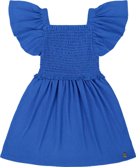 Caractéristiques • Robe à manches papillon • Corsage smocké • Jupe évasée en forme de A • À partir de 2 ans à 14 ans