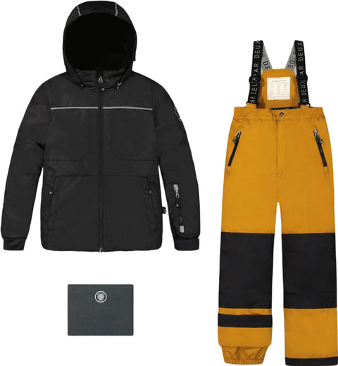 Qu'il fasse du snowboard, du ski ou de la luge, notre habit de neige 2-pièces et pantalon le gardera au chaud et au sec lorsqu'il sera dans la neige! Cet ensemble isolant comprend un manteau doublé en molleton avec des manches articulées, une jupe pare-neige, un capuchon amovible et des bretelles de sac à dos intérieures pour faciliter le transport. Le pantalon assorti a des protections anti-neige au niveau des chevilles, des panneaux en Cordura renforcés au niveau de l'assise, des genoux et de l'ourlet, un pantalon à taille élastique et des bretelles à logo amovibles et réglables. Cet ensemble est agrémenté d'un anneau en D pour les mitaines, d'accents réfléchissants, de poches à fermeture éclair et d'un cache-cou assorti en molleton polaire pour plus de chaleur!