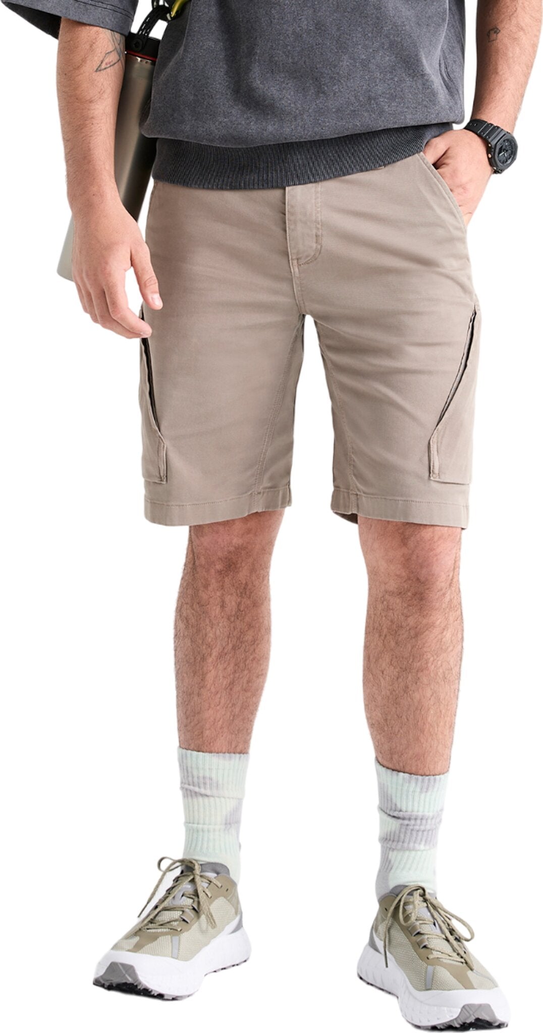Léger, dans une coupe décontractée, ce tissu est imprégné de fibres techniques pour la respirabilité et la fonctionnalité par temps chaud. Les caractéristiques comprennent des poches cargo zippées et des poches de sécurité arrière pour plus de fonctionnalité et de polyvalence.