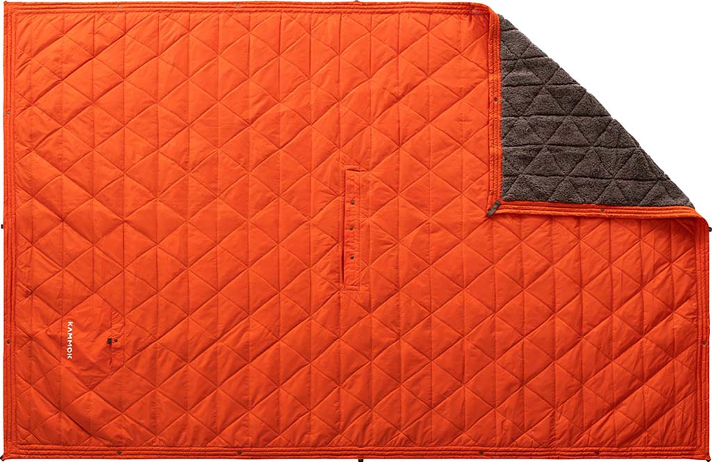 Les boutons-pression le long du bord de la couverture de montagne l'aident à se transformer facilement en différents modes. De la couverture de camping classique, à étendre sur le sol, au sac de couchage minimaliste pour des excursions nocturnes inattendues. Une ouverture centrale dans la couverture la transforme en un poncho élégant mais fonctionnel, une couverture portable pour rester au chaud et au sec, tout en gardant les mains libres. Retournez le sac de rangement doublé de molleton et remplissez-le pour en faire un oreiller de secours.