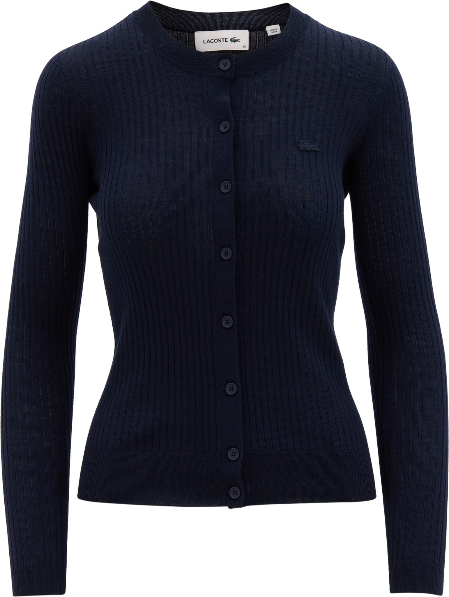 Ce cardigan est un concentré de savoir-faire et d'élégance Lacoste. Conçu avec la technologie avancée du tricotage 3D, il offre douceur, confort et féminité affirmée grâce à une maille côtelée sans coutures en laine mérinos, qui souligne les courbes du corps. Des finitions soignées et un crocodile signature brodé complètent son design intemporel.