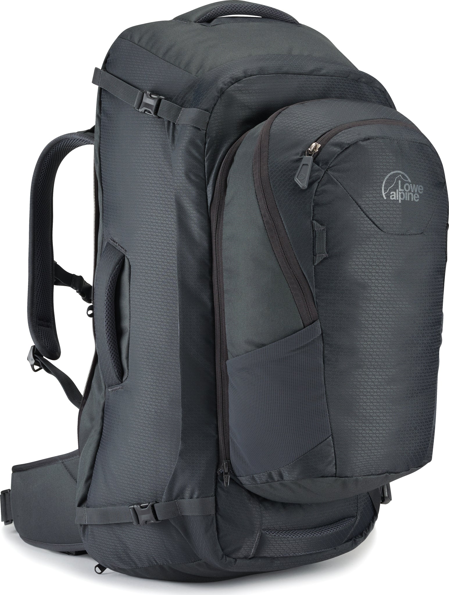Caractéristiques • Sangles de compression intérieures • Conception qui se verrouille • Sac de jour détachable à l'avant • Poches en mailles à l'intérieur • Poche zippée sur le dessus • Sangles de compression extérieures • Attaches à l'avant • Sangle à la poitrine • Compartiment pour réservoir d'hydratation • Poche de sécurité dissimulée • Poches pour bouteilles d'eau sur le sac de jour • Volume: 55 + 15 L • Dimensions: 68 x 35 x 30 cm • Poids: 2,20 kg