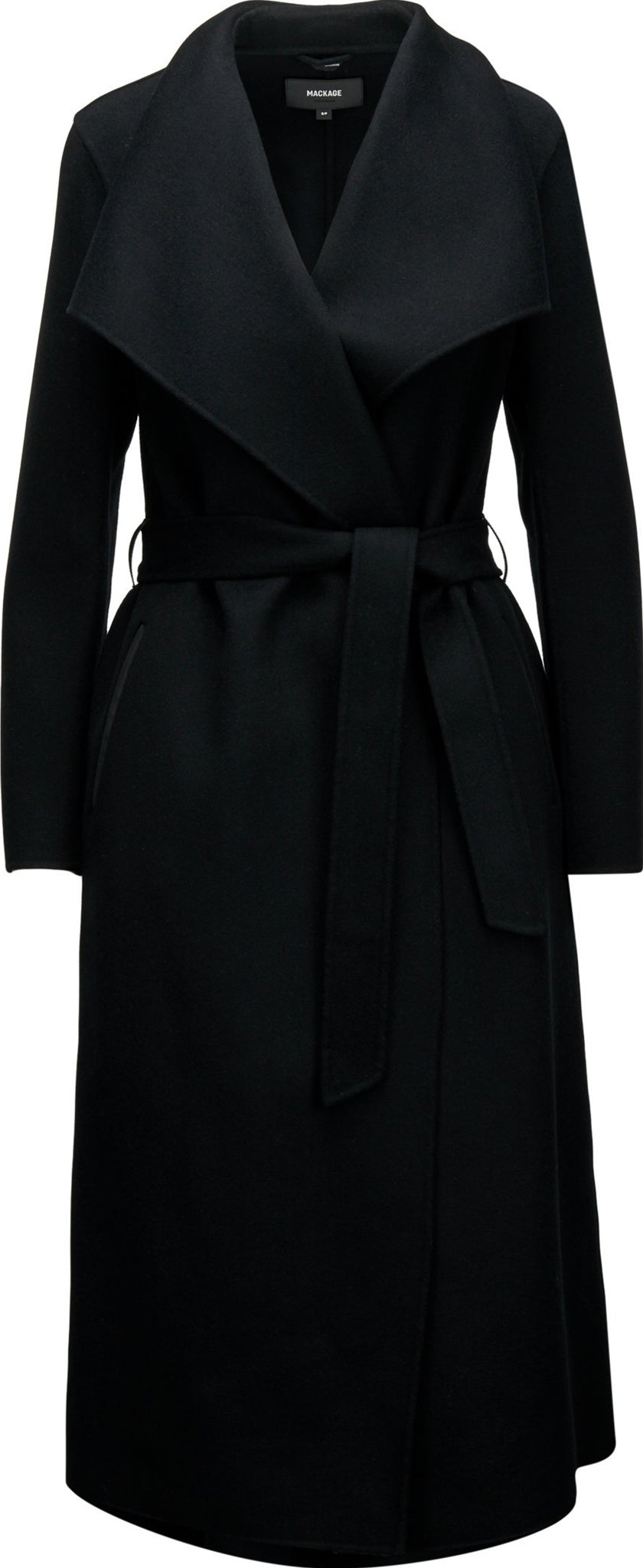 MAI par MACKAGE est un manteau en laine double-face cousu à la main. Son col en cascade tombe naturellement du cou, tandis que sa ceinture à la taille vient structurer la silhouette semi-ajustée. Enveloppez-vous de chaleur et de style lors des jours frais de mi-saison.