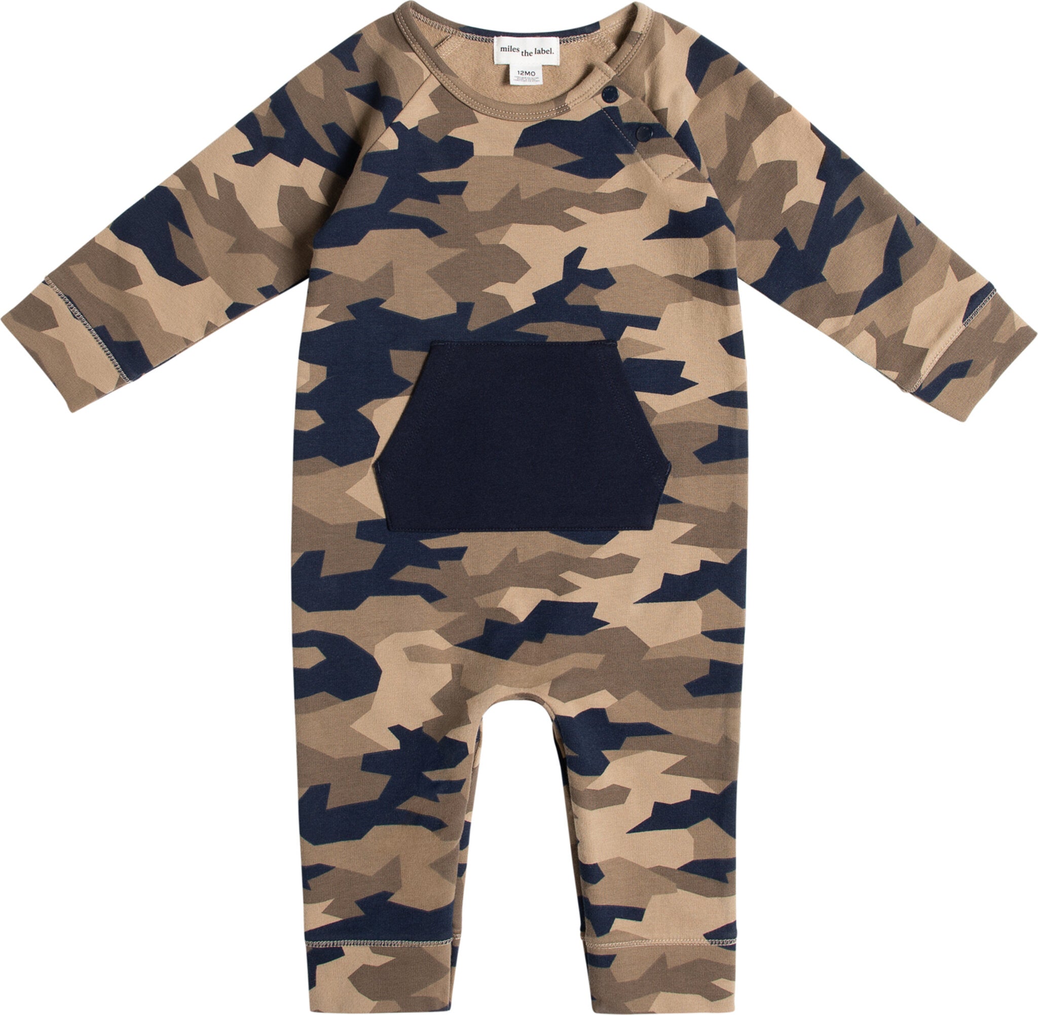Cet ensemble de jour à imprimé camouflage, avec sa poche ventrale contrastante, est le vêtement idéal pour les petits sportifs. En coton biologique, il sera douillet et confortable pendant les aventures quotidiennes de bébé. Les boutons sur le côté de l’encolure facilitent le changement tout en apportant une touche rétro sympa.