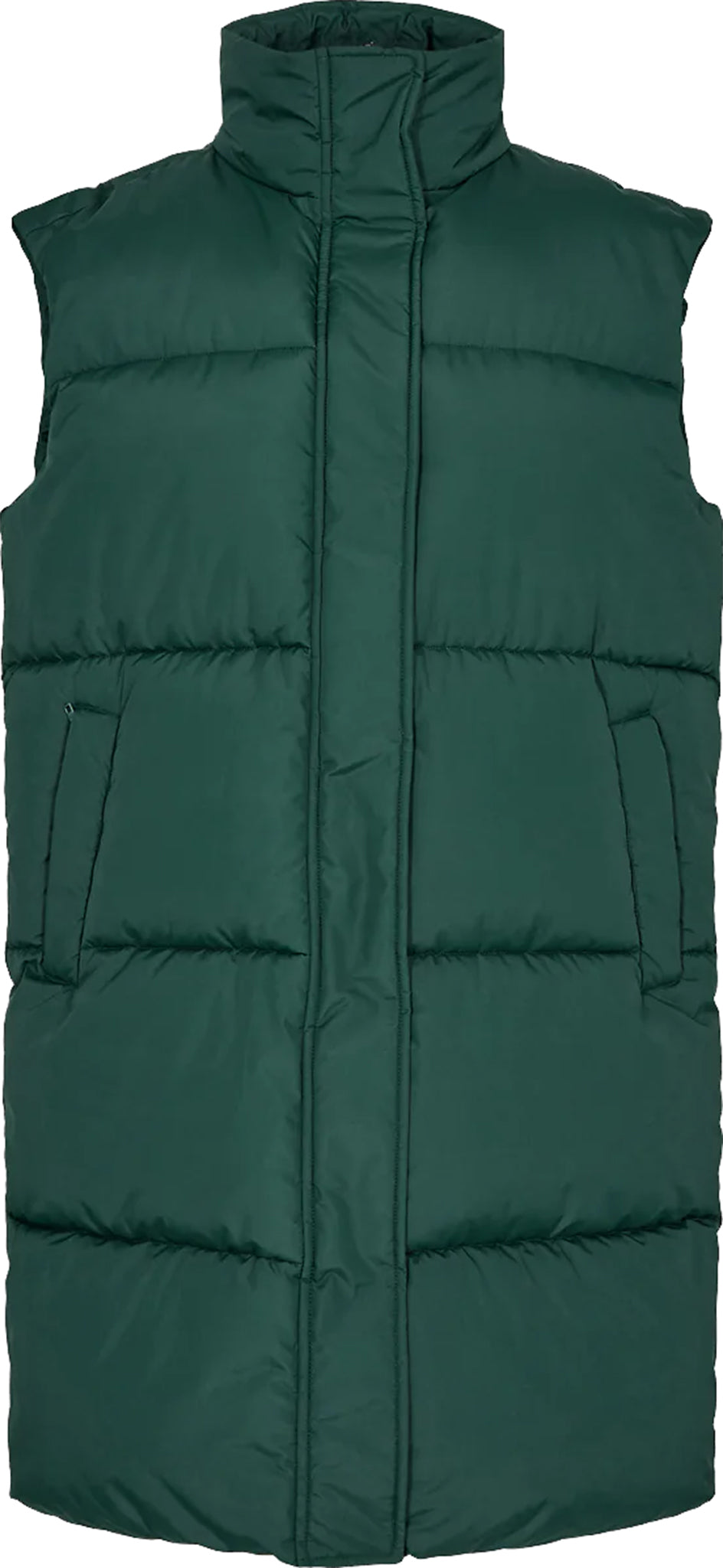 Puffine 9543 est un long gilet matelassé fabriqué en 100% polyester recyclé.