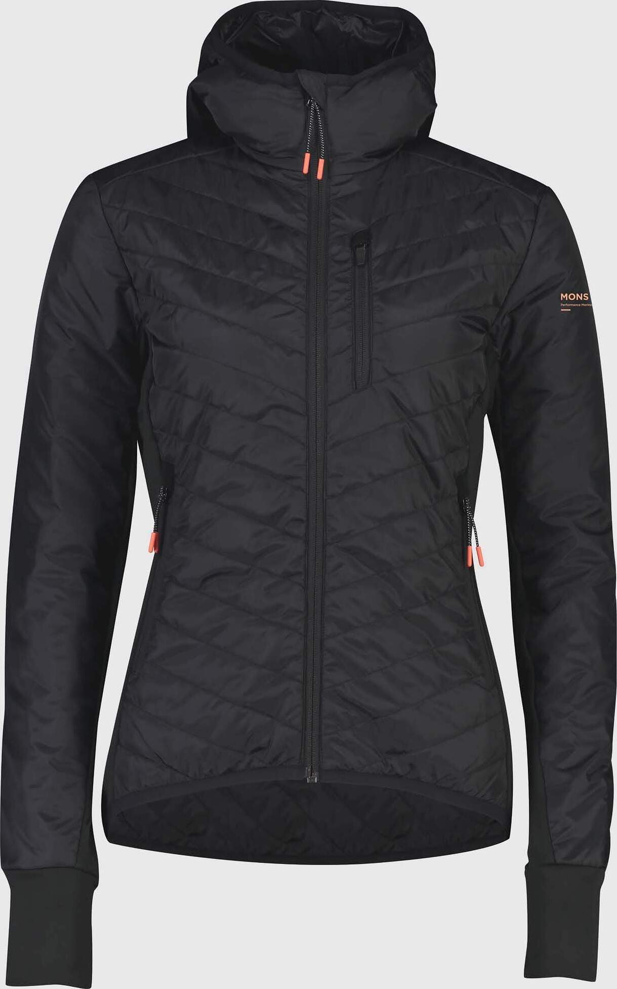 • Traité DWR. • Rembourrage: 70% laine mérinos 30% polyester. Empiècements latéraux: 59% polyester 36% laine mérinos 5% élasthanne. Extérieur Rip Stop: 100% polyester recyclé. Doublure: 100% nylon.