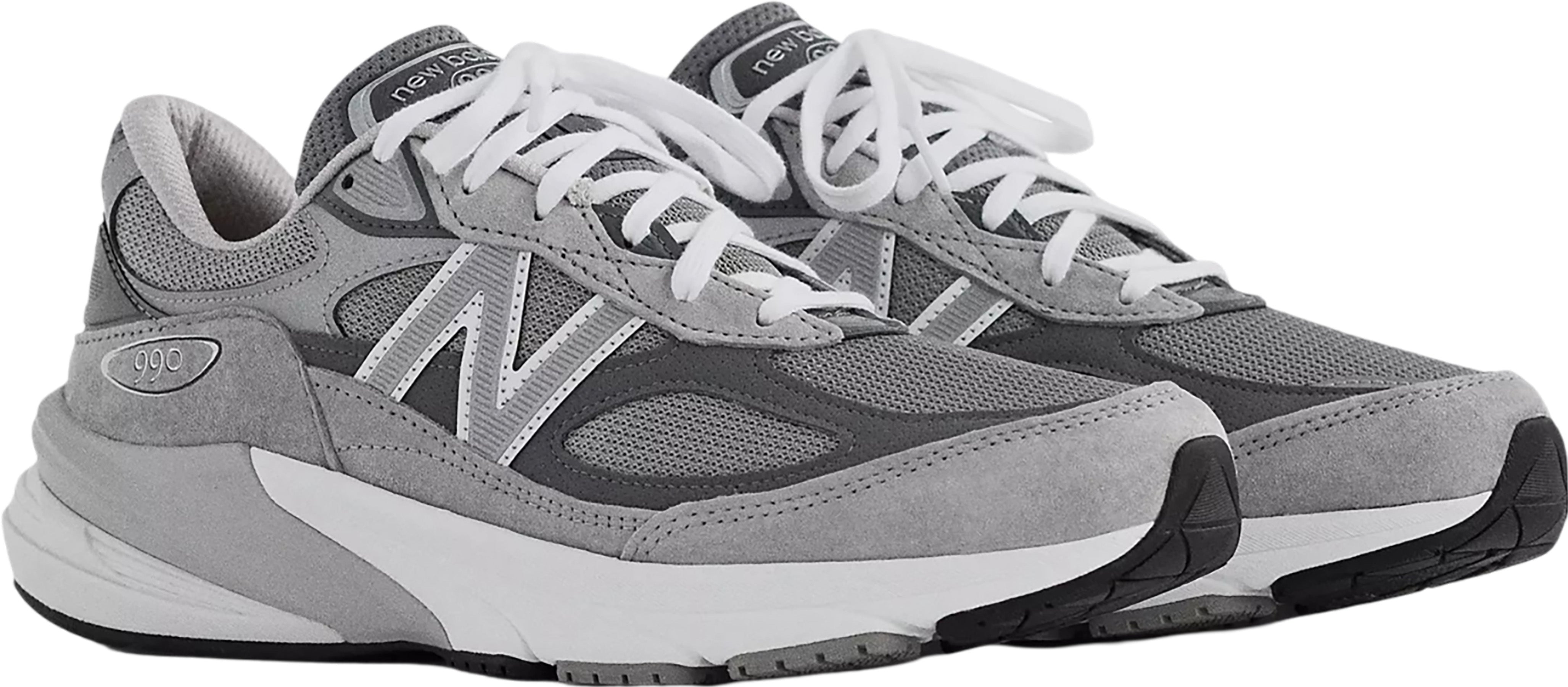 Les concepteurs de la première 990 avaient pour mission de créer la meilleure chaussure de course sur le marché. La Made in USA 990v6 reprend ce mandat original, avec une série de retouches inspirées par la performance. L'empeigne se passe de la selle médio-pied standard, permettant aux superpositions en peau de porc et synthétique de s’étendre du talon aux orteils à travers la sous-couche en maille, ce qui donne un look furtif et aérodynamique. Alors que le nouveau design marque l'un des changements les plus spectaculaires d'une génération de modèle à l'autre que la 990 n’a jamais connus, le plus marquant se trouve à l'intérieur. L'ajout de la semelle intermédiaire FuelCell signifie que l'évolution de la 990 se ressent autant qu’elle se voit. Les composants de New Balance Made sont à 70% ou plus d'origine domestique. Made représente une part limitée des ventes de New Balance aux États-Unis.