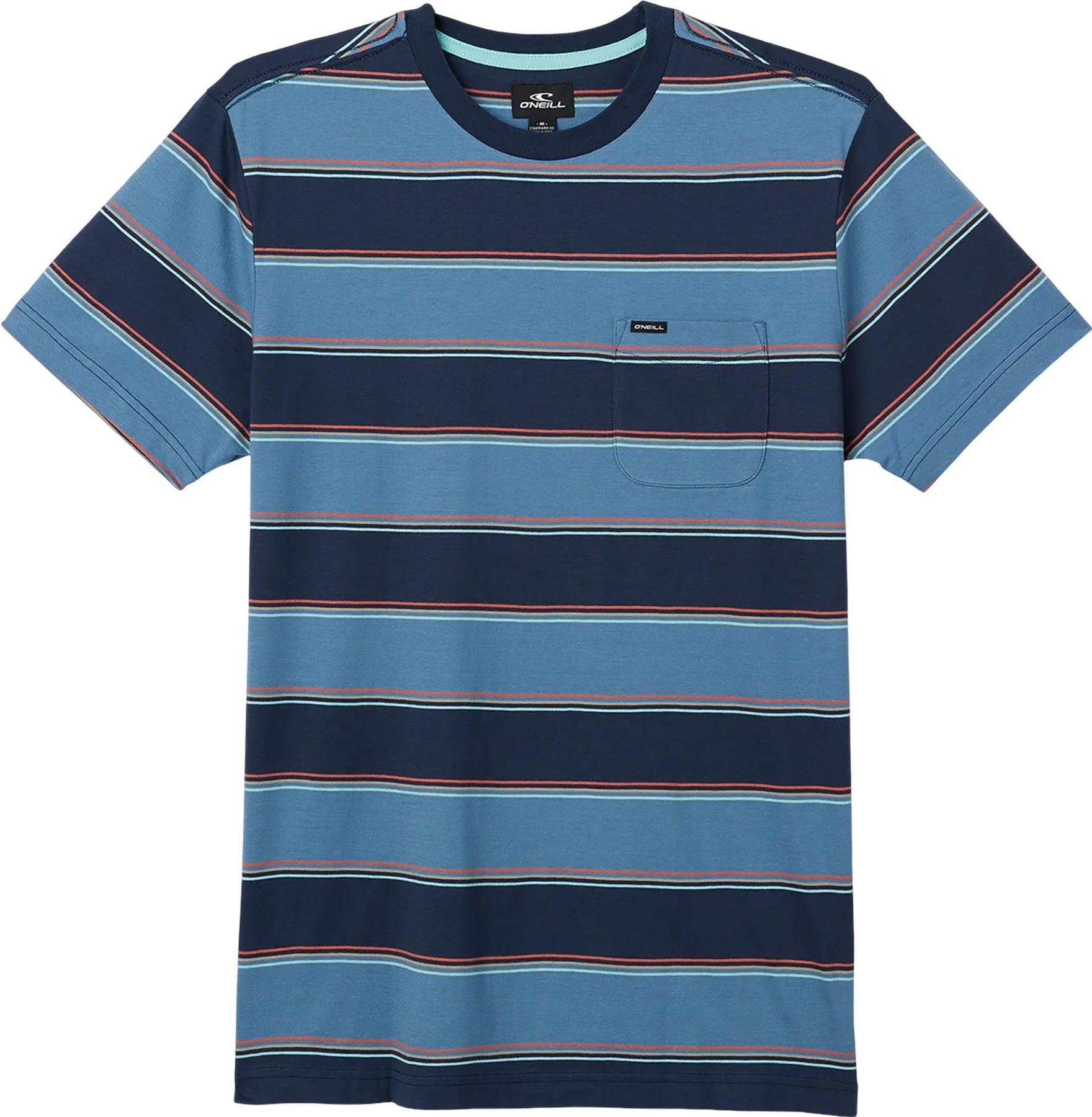 Un tee-shirt rayé classique en coton de qualité supérieure, avec une poche sur le devant et une coupe décontractée au niveau du corps et des manches.