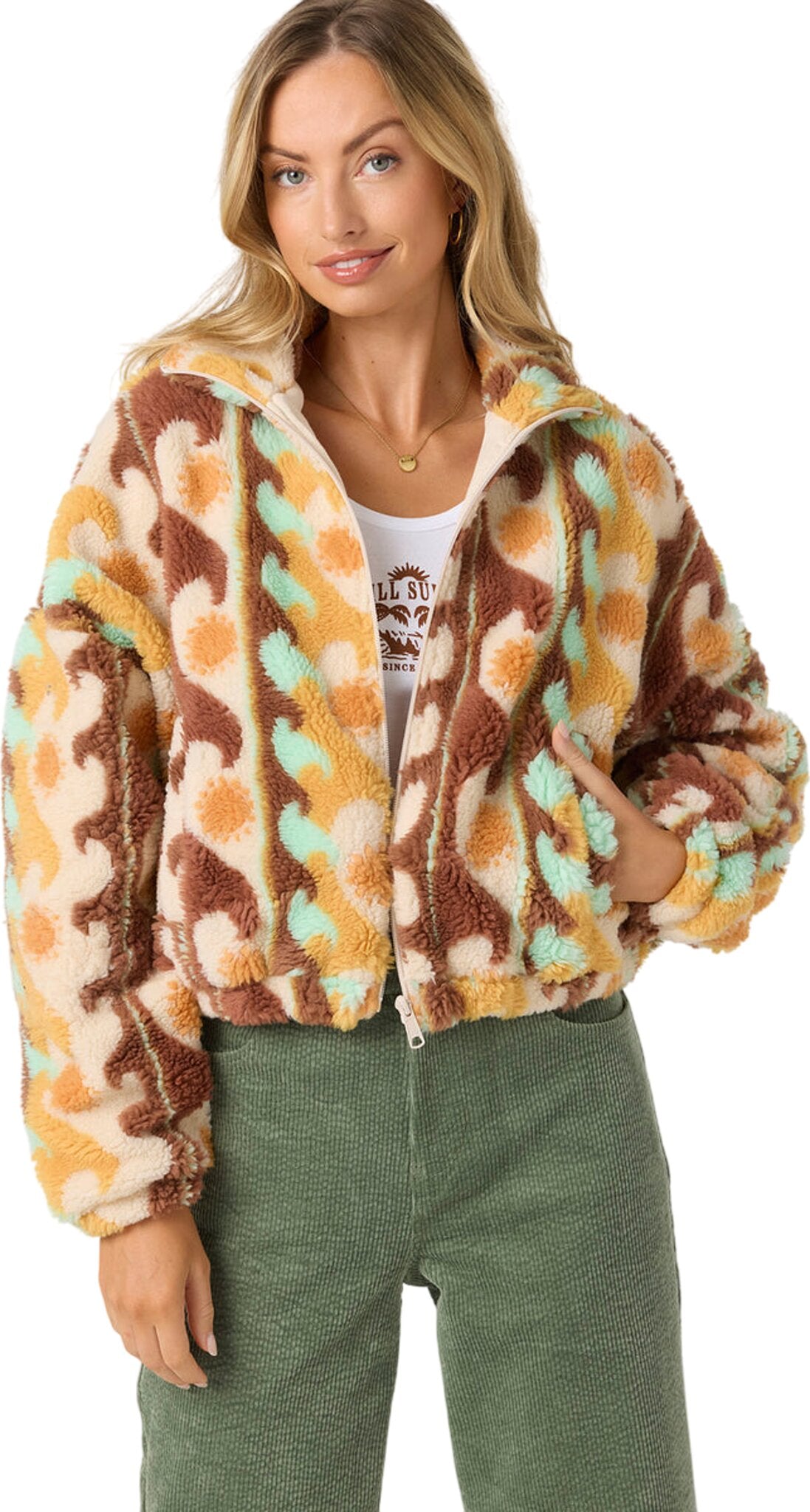 • Doublure en jersey, fermeture à glissière sur le devant, poches passepoilées
