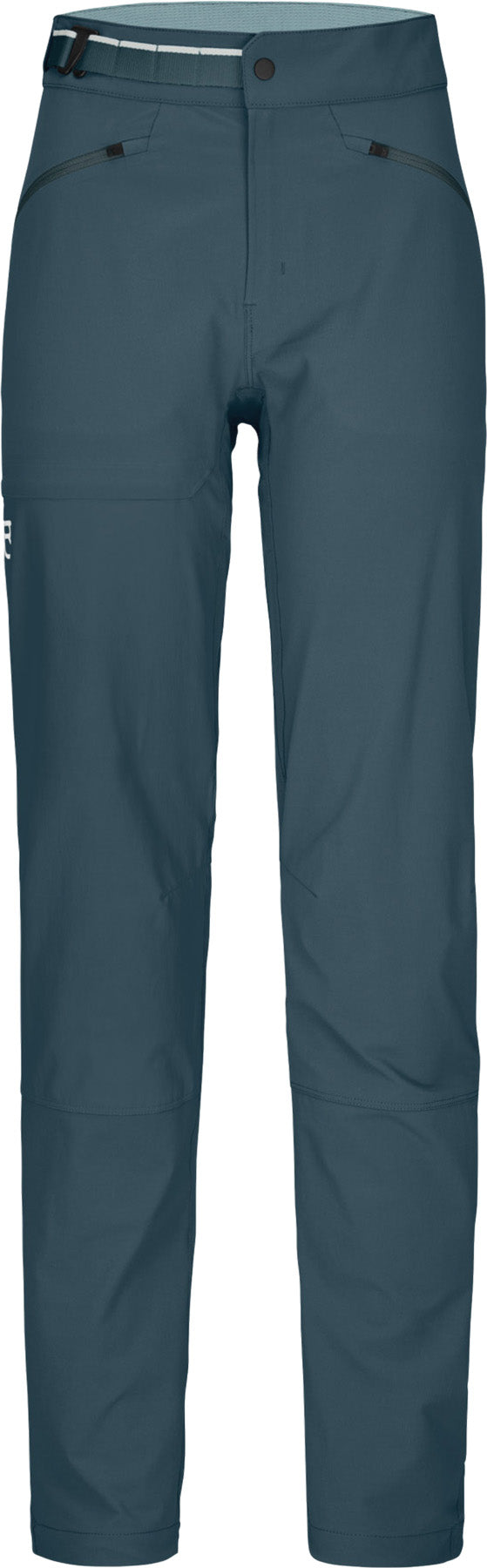 Conçu pour l'aventure en montagne, le pantalon léger Brenta Pants pour femmes n'a pas peur de se frotter à la roche et accompagne chaque mouvement. La matière Shield Light résistante passe le test Martindale avec plus de 80000 rotations et fait partie des tissus les plus robustes D'ortovox. La matière élastique dans 4 sens garantit une liberté de mouvement optimale en montagne et est également respirante et déperlante, et sèche rapidement. La nouvelle coupe ample et la taille plus haute font de ce pantalon un vêtement à la fois confortable et moderne. Grâce à un crochet, la ceinture intégrée se fixe en toute simplicité et n'a pas besoin d'être défaite lorsque l'on enfile ou retire le pantalon. Les deux poches spacieuses à l'avant avec fermeture éclair offrent suffisamment de place pour ranger des clés ou de l'argent, tandis que la poche sur la cuisse avec fermeture éclair dissimulée et ourlet thermosoudé offre un espace de rangement supplémentaire dans un style épuré. Les empiècements en mesh mérinos au niveau de la taille et des poches apportent un confort supplémentaire. Le Brenta Pants pour femmes est sans PFC et climatiquement neutre.