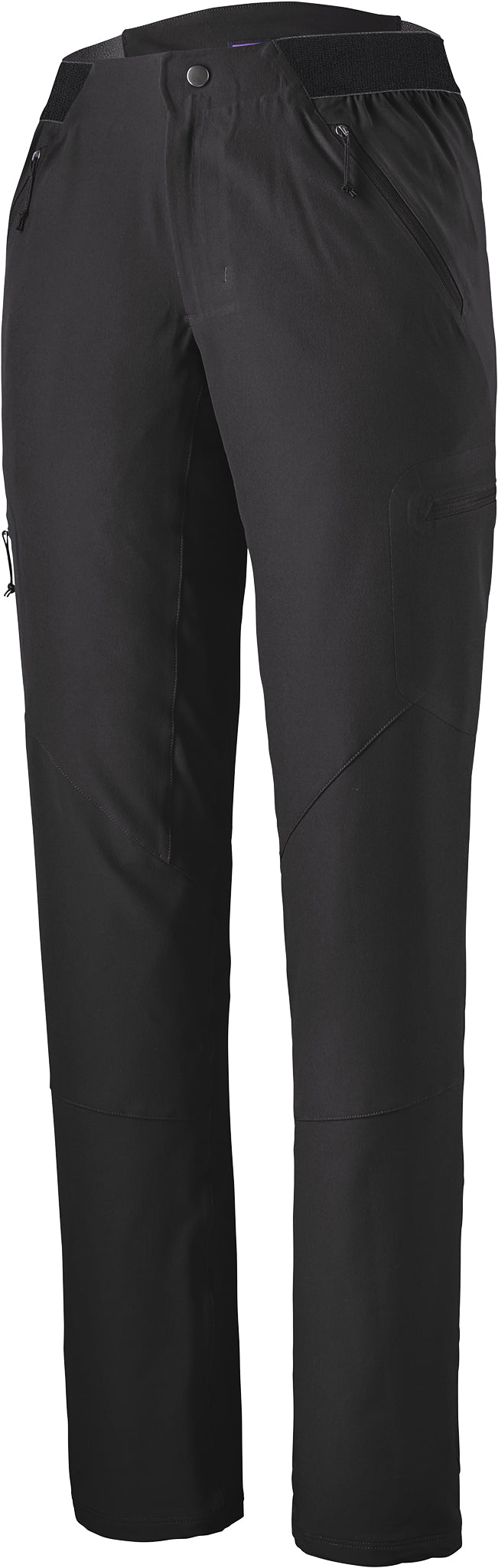 • Discrète taille élastique incurvée, avec braguette zippée, offrant un confort optimal sous un baudrier ou une ceinture de sac à dos