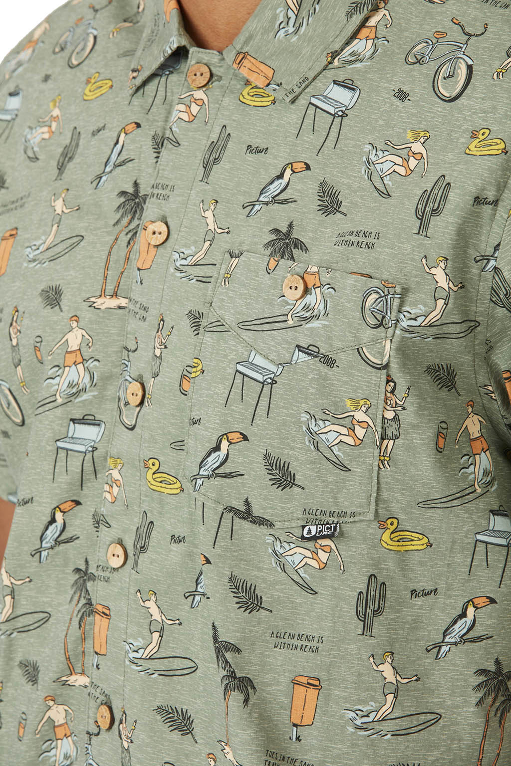 Une chemise tendance en Coton Biologique.Caractéristiques techniques:• Composition: 98% Coton Biologique / 2% Spandex• PopeLine coton Stretch• Manches courtes• Motifs imprimés• Manches retroussées• Poche poitrine• Boutons en noix de coco• Logo tissé• Poids: 260 gMatériaux:• 98% Coton Biologique / 2% Spandex• Coton Biologique