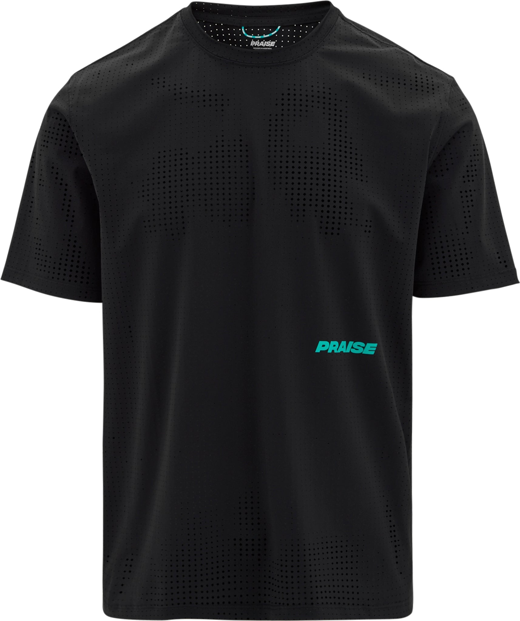 Haut à manches courtes en mesh performance léger avec perforations au laser. Imprimés réfléchissants au devant et au dos.