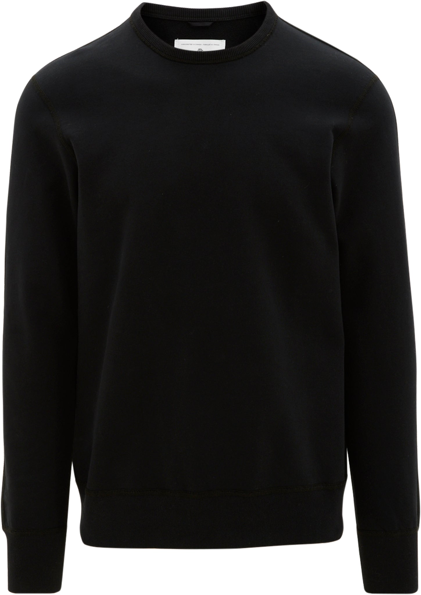 Caractéristiques : • Coutures plates • Manches montées raglan • Col tenant côtelé • Panneau latéral côtelé de grande qualité • Poignets et ourlet côtelés de grande qualité • Renforcements à bride d’arrêt • Vignettes tissées avec piqué emblématique • Fabriqué à la main au Canada • Tissu : 100 % coton