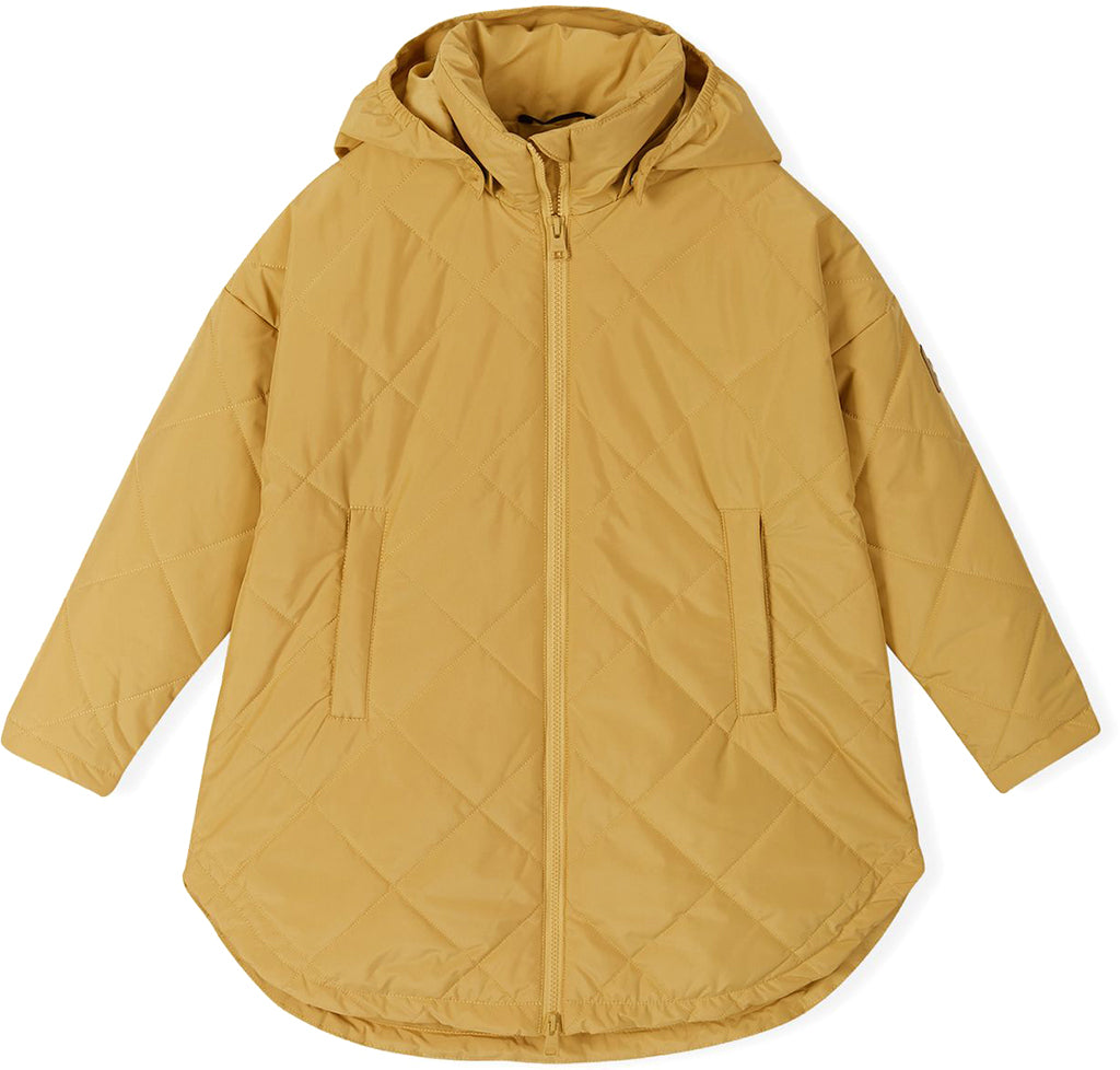 Ce manteau urbaine génial et intéressant pour les enfants est fabriqué à partir de tissu qui stocke la chaleur à l'aide de café moulu. Le café moulu est carbonisé à très haute température et pulvérisé en particules microscopiques ayant une structure en nid d'abeille. Lorsque ceux-ci sont filés en polyester, ils forment de minuscules trous dans les fibres qui stockent la chaleur. En plus de l'isolation rembourrée flexible, le nouveau tissu chatoyant en grains de café garantit que les enfants restent au chaud à l'extérieur. Le capot peut être enlevé. Il est doté d'une fermeture éclair à double sens pour une liberté de mouvement et de poches zippées pour garder les clés en sécurité. Style plus long.