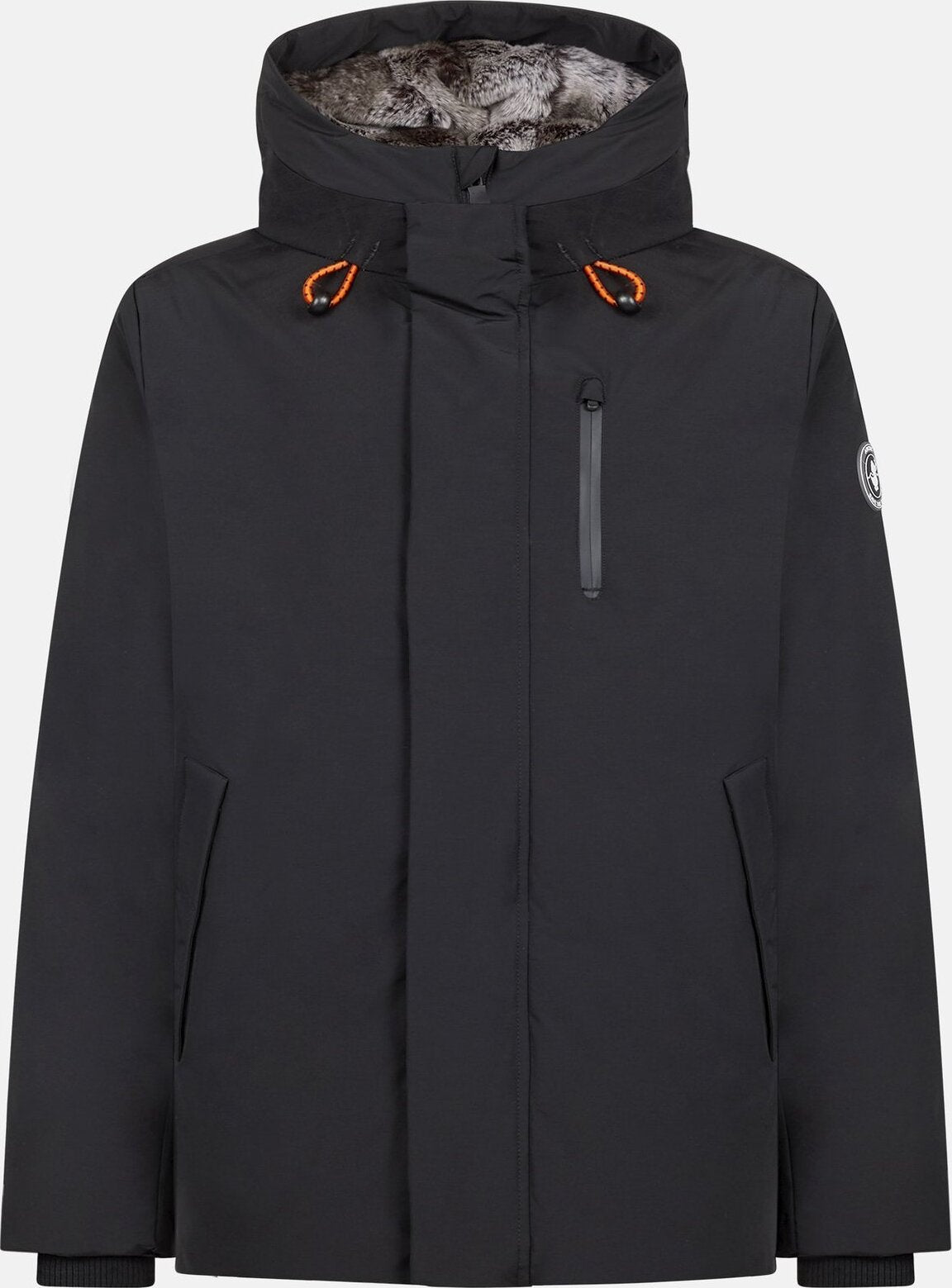 Composition • 60% coton et 40% nylon calandré • Ressemble à du coton • Sensation compacte • Capuche ajustable • Fermeture éclair double • Doublure en fausse fourrure.