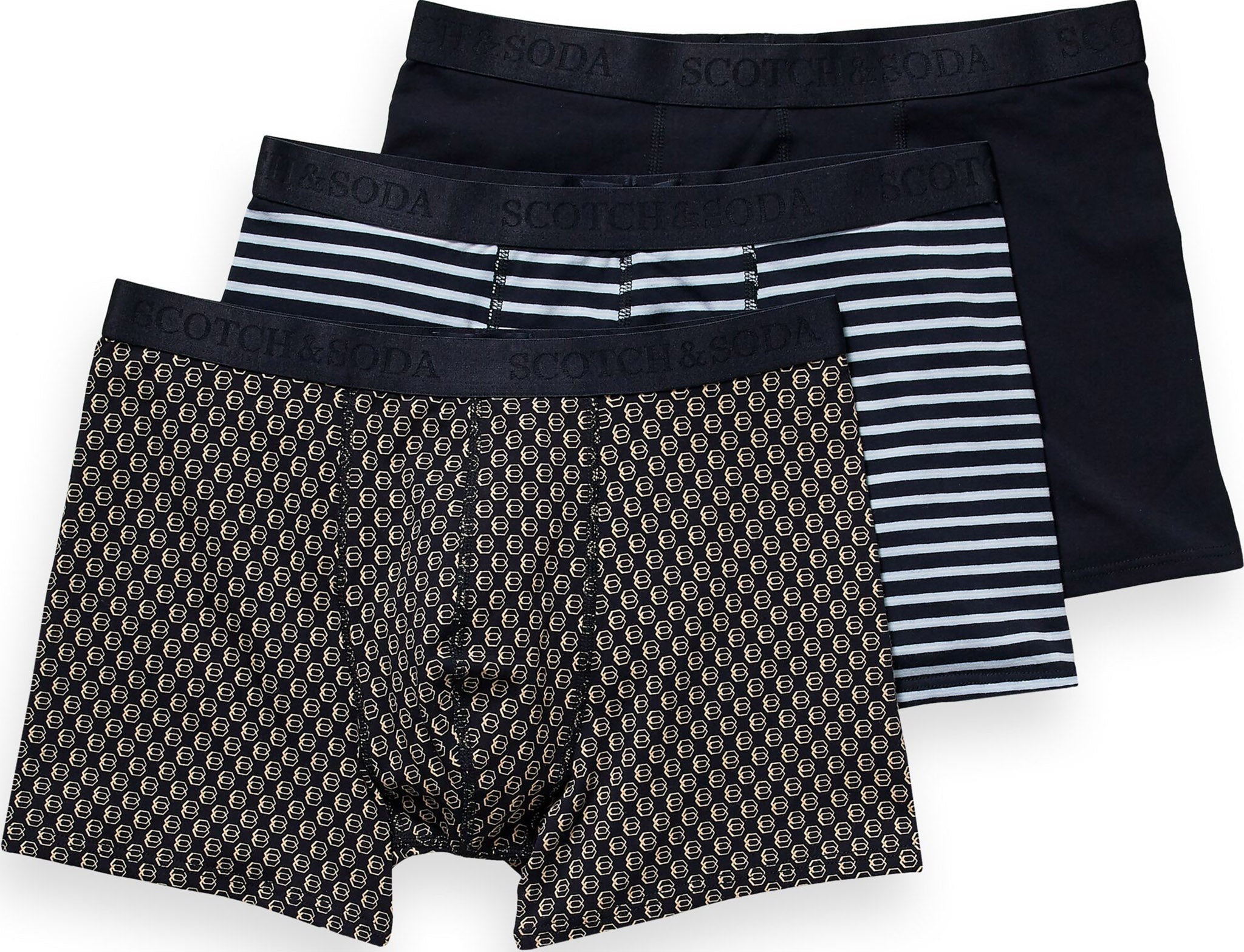 Ce caleçon de style classique pour hommes est fait de coton extensible doux et comporte une taille élastique contrastante à taille mi-haute. Contient trois paires.