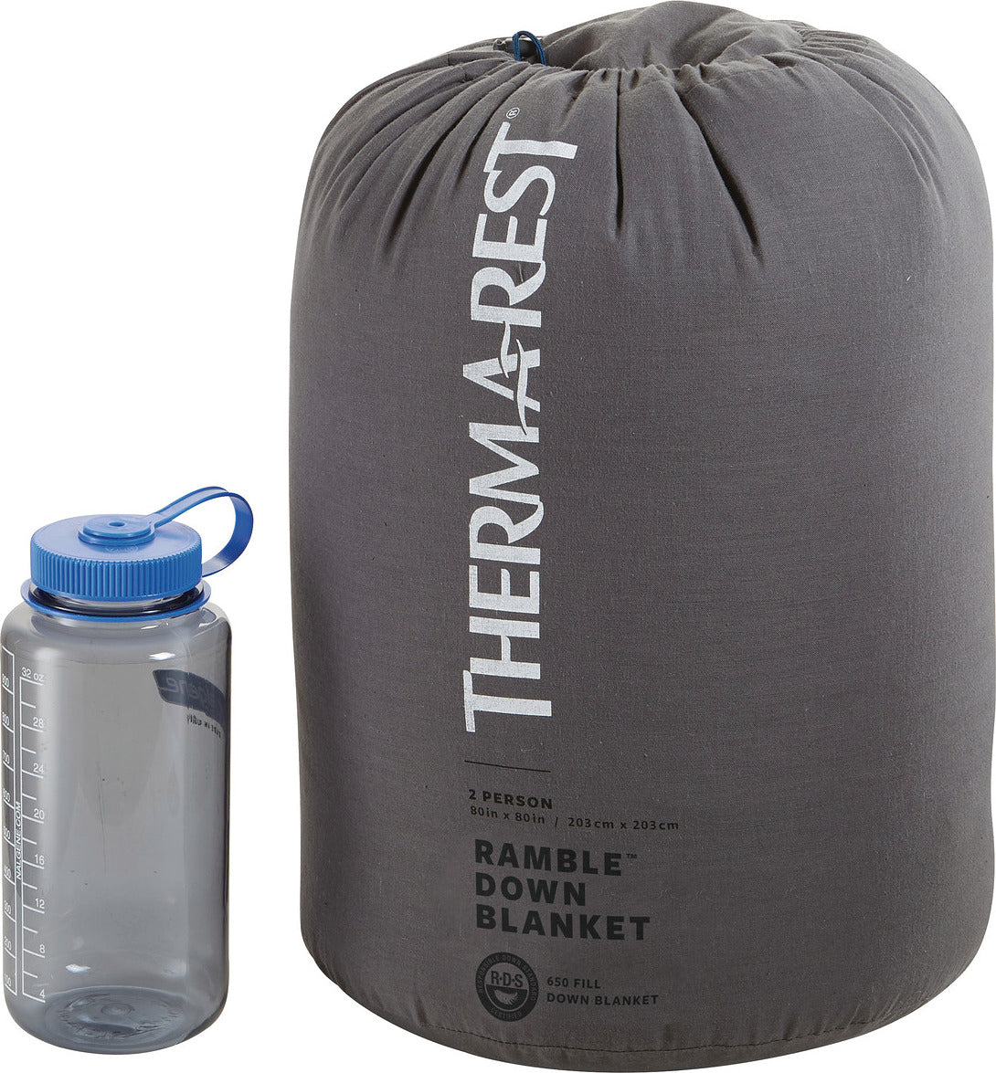 Caractéristiques : • Duvet hydrophobe Nikwax Hydrophobic Down™ de gon?ant 650 : reste plus sec et maintient son gon?ant 60 fois plus longtemps que du duvet non traité. • Matériaux doux au toucher : douceur et confort la nuit avec des matériaux haut de gamme et un matelassage agréable. • Spacieuse : tout comme votre propre couette à la maison, la couverture Ramble Down convient parfaitement pour deux personnes. • Poids : 1305 g (2 lb 14 oz) • Dimensions(Long. x Larg.) : 224 x 224 cm (88 x 88 po) • Remplissage : Duvet hydrophobe Nikwax Hydrophobic Down™ de gon?ant 650